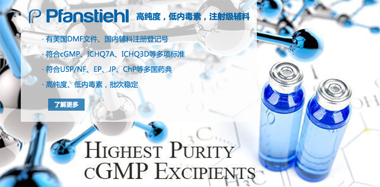 “熱烈祝賀Pfanstiehl的注射級甘氨酸Glycine(G-140)喜獲CDE登記號F20250000403, 這是Pfanstiehl產品獲得的第18個CDE登記號!”甘氨酸在醫藥輔料制劑中應用廣泛,, 可作為緩沖劑,增溶劑,穩定劑等,具有諸多優勢。Pfanstiehl秉承一貫高品質理念,為滿足全球生物制藥行業對于高品質甘氨酸的需求,隆重推出的注射級甘氨酸Glycine (G-140), 具有超高純度,超低內毒素,超低金屬殘留的特點,單獨檢測29種金屬離子,并且新增DNA,RNA,DNA酶,RNA酶和脂肪酶,亞硝酸鹽等多項質量指標的檢測,符合多國藥典規定(USP, EP, BP, JPE, ChP),可用于生物治療性藥物和疫苗的生產。產品信息:· 產品名稱:Glycine, High Purity, Low Endotoxin, Low Metals, USP, EP, BP, JPE, ChP (G-140)· 中文名稱:甘氨酸· 分子式:C2H5NO2· 分子量:75.07 g / mol· CAS號:56-40-6· 產品貨號:G-140產品特點: · 超高純度,超低內毒素,超低微生物含量,超低金屬雜質殘留· 質量指標新增DNA,RNA,DNA酶,RNA酶,脂肪酶和亞硝酸鹽檢測· 符合多國藥典:USP, EP, BP, JPE, ChP· 符合ICH Q3D標準· 符合GMP標準· 已獲DMF和CDE登記號 產品應用:· 緩沖劑· 穩定劑· 增溶劑如果您對Pfanstiehl注射級別Glycine G-140感興趣,歡迎聯系Pfanstiehl 中國區代理商北京西美杰科技有限公司獲得如下詳細的產品概況說明文件和測試樣品。Pfanstiehl Inc.最新產品系列如下,歡迎聯系北京西美杰科技有限公司獲取100g裝免費樣品。北京西美杰科技有限公司為Pfanstiehl中國代理,為客戶提供完善的技術支持與售后服務。歡迎撥打西美杰客服電話400-050-4006或者登陸網站www_czypjx_com.cqfcdc.com了解更多信息。 更多>